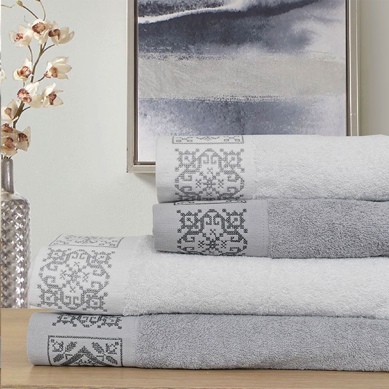 Σετ πετσέτες με φάσα κέντημα HOMELINE 3 τεμαχίων {1*30Χ50cm &1*50Χ90cm &1*70Χ140cm} 100%Βαμβακερές cotton Κουτί συσκευασία δώρου χρώμα Γκρί