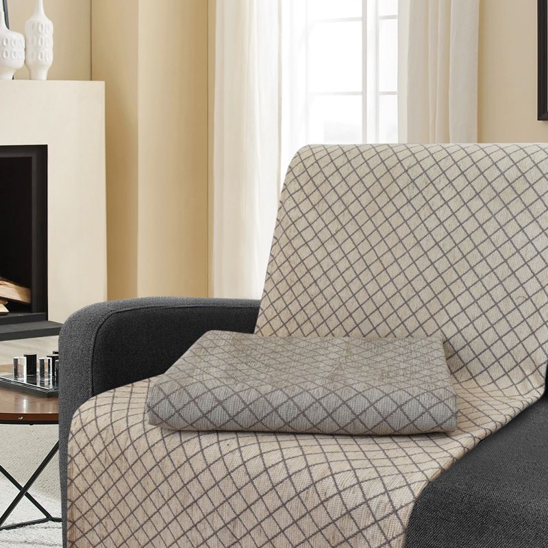Ριχτάρι Μεμονωμένο HOMELINE 1 τεμάχιο Τριθέσιο{1*180X300cm} 100% Σενίλ (chenille jacquard) Χρώμα Καφέ-Γκρί